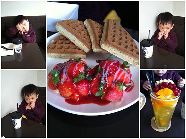 小恩吃了半塊鬆餅,接著主攻草莓冰淇淋,通通吃光光ㄟ...吼...我都沒分到他開心到猛做鬼臉,逗得隔壁桌的阿嬤笑聲連連。
