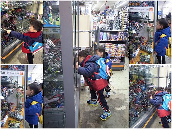 終於到了五樓,動漫模型、電玩聚集地,兩小看得兩眼發直,簡直要黏在玻璃窗上了,是有這麼愛喔~
