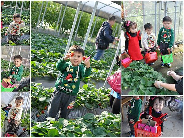 我們選擇一般草莓,有專門的大姐姐陪著我們,先教小朋友們怎麼採草莓,一個一個指導,確定都會了,才在一旁看顧,不時提醒小朋友要輕輕地放在盒子裡,不然會變成草莓果醬喔~不時誇獎小朋友採的好專業,選的草莓又大又紅,真是貼心~~