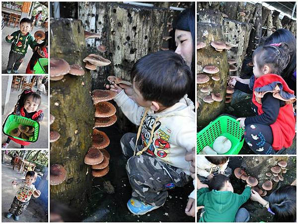 一樣有貼心的大姐姐引導,如何挑選成熟的香菇,要像古代油紙傘這樣整個散開的就是熟了,若是像降落傘這樣有點彎彎的就不能採唷!!小朋友們自己尋找成熟香菇,然後要用手指捏住香菇的蒂頭(跟段木相連的地方) 用力扭轉,趴~~香菇就掉下來啦~~吼...超大朵的ㄟ~而且小朋友超有力,咻一下就拔下來了,瞬間照片很難拍呀~現採香菇含水量很大,每一朵都又大又重...貼心的大姐姐提醒說,大概一個小朋友摘兩朵就夠了,果然...一秤重,六朵香菇220元。哇!!!(香菇好像鬆餅喔~愛吃的阿母胡亂聯想中!)