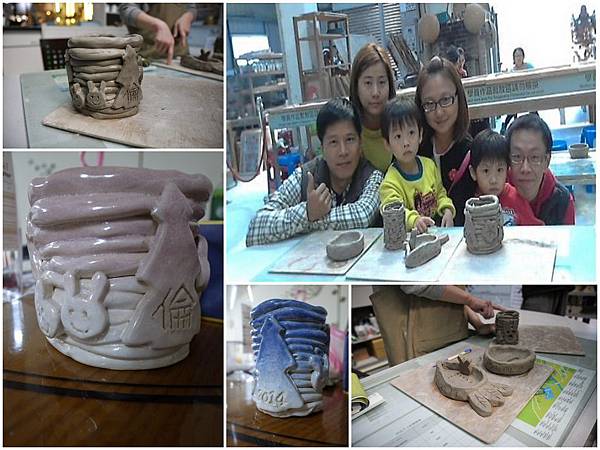 小子做完,跑到空桌去吃上午茶,留下大爺負責善後,選好顏色,付了錢,(兩個筆筒好像是六七百塊,久到真的忘了)就等一個月後看窯燒後的成品啦哈哈!!