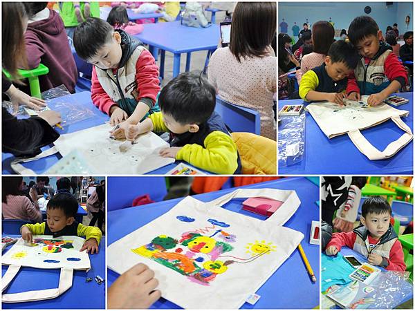 勤儉持家的大嬸本性,怎麼算都不合呀~怎麼會有那麼多人要做這個?? 而且小小朋友連棉花都塞不好,要大人幫忙ㄟ~這DIY的成分也太低了吧!!溫刀大爺開釋--平平花錢,拿隻漂漂亮亮的小象,送禮自用兩相宜,反觀小子們的自由塗鴉創作手提袋...嘻嘻嘻,應該只有阿母我不嫌棄會背出門吧~(幸好沒有畫T-shirt,不然真的沒人要穿出門~哈哈哈!!)