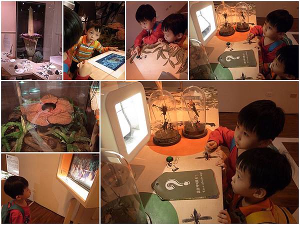 像是有一個植物趨敵的方式,小朋友可以按鈕,圖卡就會一頁一頁翻動,但圖卡上的圖還是須要搭配平面展區的文字,才知道那個圖是在畫啥,阿母我每到一區,就先讓他們按鈕按到爽,等我看完文字說明,才讓小子們按一次鈕翻下一頁慢慢解釋給他們聽。呼...累~重點是我已經咳嗽咳到快沒聲,小子還會跳針一直要我重複講,吼...想整死我嗎?