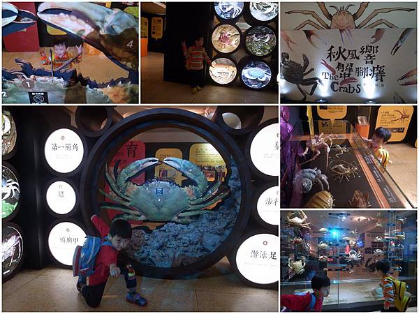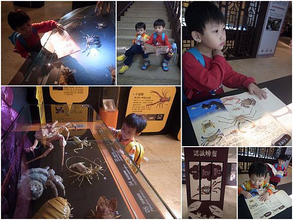 小子們的重點項目,一路橫衝直撞,我看館方人員都快要舉牌警告了,超HIGH的兩隻過動兒。這一館完全不給阿母我當場惡補的機會,每回我還沒看完文字說明,小子就急著衝下一個點看下一種螃蟹,真是...火都快冒出來了