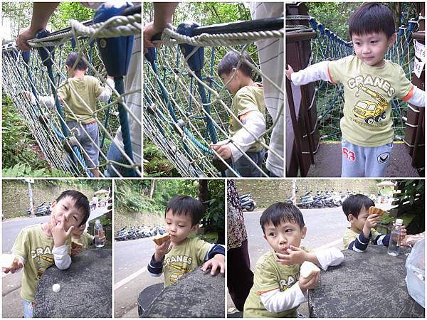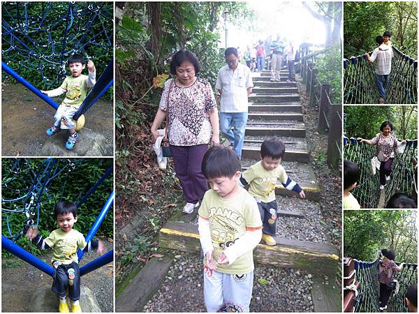 兩個小俗仔不敢走吊橋,只好阿公阿嬤一人抱一個,真是爽翻了~後頭,小恩鼓起勇氣走了一小段,Good~真的長大了(膽子有大那麼一咪咪~哈!!)