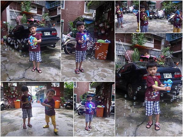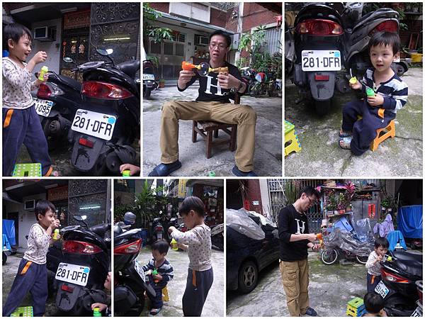 阿母愛買篇:小孩兒愛玩的吹泡泡買了不少,但吹成功的機率太低,常看到別的小孩拿出重武器,泡泡槍,我知道小子們很羨慕,但隨便一隻都破百元ㄟ(小七賺非常大居然要賣200元呀~觀光區賣的也很搶錢~)所以遲遲沒下手,剛好這周到樹林喝喜酒的時候路過玩具批發店(豪大一棟樓呀~)失心瘋阿母好想通通包回家,哈哈哈~最後終於買了兩隻小丑魚泡泡槍(有聲光唷~)加八顆電池,這樣才224元,老闆,你真是佛心來著呀!小子們愛死了~一整罐泡泡水不用十分鐘就噴完了,哈哈~(幸好家裡很多泡泡水補充罐)