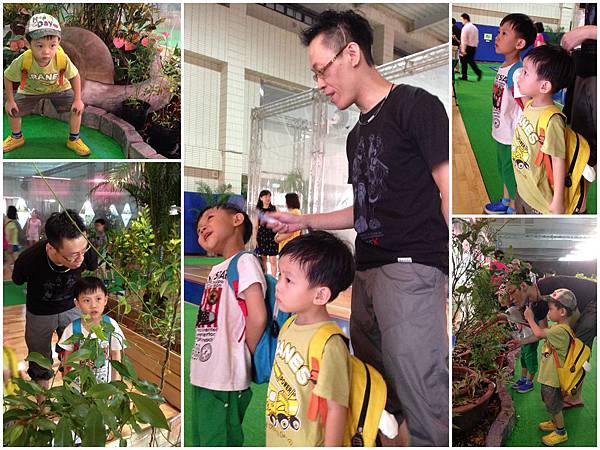 而且我一直記得上次因為蠶豆症的關係,讓他們倆不能去看蝴蝶標本(防腐劑有樟腦味),阿倫倫整個哭慘了,很冤呀!!所以這次才會要帶他們來看活的咩~他們超期待地說,看小恩跟阿倫倫找得多仔細、聽得多認真、笑得多HIGH呀~明明是蝴蝶展,但小子們的重點通通跑到蝴蝶寶寶們身上了~