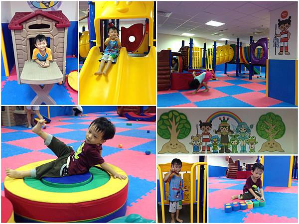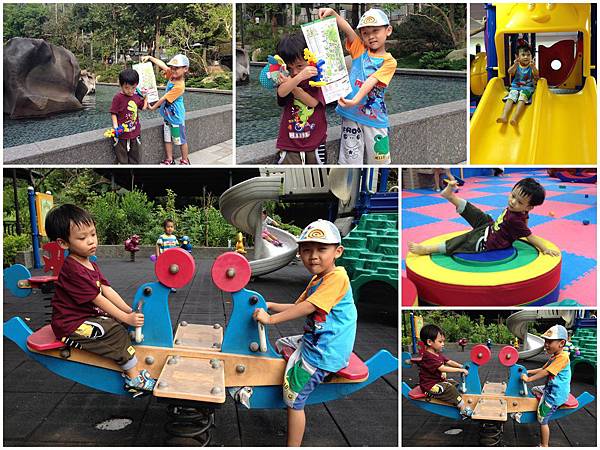 熱帶雨林健行步道有三條,路線A走三十分鐘;路線B走一個小時;路線C走兩個小時,一入園先到親子樂園晃一晃,溜滑梯、搖搖馬、盪鞦韆,才不過十來分鐘兩小子就汗如雨下,真是夭壽熱。誤打誤撞進了會館,發現有室內的親子樂園,小子玩的舒服又開心,阿母也爽爽地在一旁納涼!