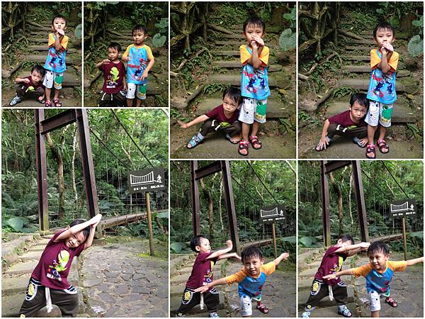 莫名的走到了彩虹橋,ㄟ...那九丁榕大板根(地標)咧...糊里糊塗的就錯過了呀~怎麼沒有個告示牌呢? 但我們已經沒有多餘的力氣往回走,阿母我還想盡量保留小子們的體力走下山,幸好小子們也對"大樹"沒什麼興致,反正剛一路上已經看到很多大樹啦!! 開心的小子們在彩虹橋前拍了照,還蓋了紀念章喔~YA!!
