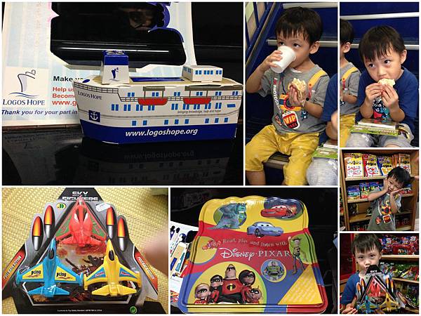 最後匆匆在出口處讓小子們自己挑了一樣東西,想當然爾絕對不會是書@@,各選了一樣玩具呀~結帳時,發現大家來朝聖的心態居多,提袋率不高ㄟ...