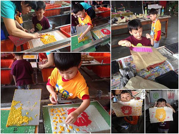 我們除了手作紙之外,還要蓋上手印(有紅、黃兩色可選擇),這個比較難,因為手會鬆掉,容易變形,失敗又要重來,單手就難了,雙手更是不可能的任務,吼...這個失敗機率太高了啦!!(自己沒有慧根還愛牽拖,哈哈!!)