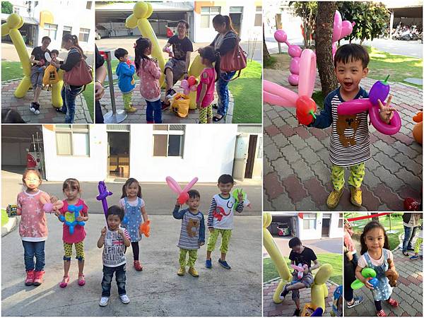 然後我們就在外頭,現學現賣了起來,每個小朋友人人有獎唷!話說回來,我不是很怕氣球嗎? 怎麼最後跟邱爺兩個人像在街頭賣藝一樣,一個接一個的折個沒完,哈哈!儀超厲害的,居然折出一隻貴賓狗!