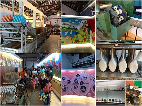 工廠有些地方沒有冷氣,展示舊式手工生產氣球的器具,沖洗區、烘烤區,看著工廠的屋頂上的大電扇與煙囪,試想著以前在這工作的人,要忍受又熱又臭(氨水)的環境,真的超苦的~怪不得找不到人工,轉型又困難,一間一間倒掉了。