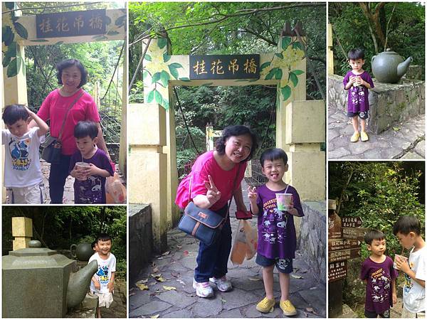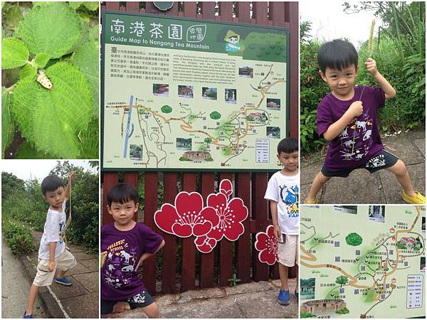 先在桂花平台休息一下,給小子們拔了兩隻毛毛蟲草(俗稱狗尾草),恩倫就一路嘻嘻鬧鬧地走到了"台北找茶園",但因為沒預約,打算在附近走一走就好。