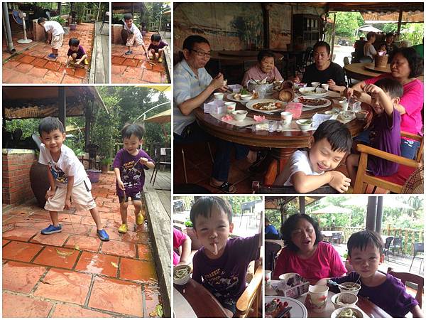 小子們抓著毛毛蟲草玩起水缸裡的水來,這樣也能玩得樂不可茲,搞不清他們身上的是汗水還是水缸水了,哈~