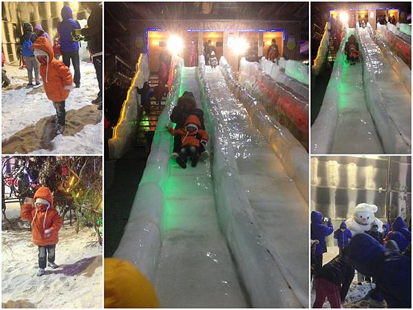 後面另外有四個滑冰道,很長很高看起來頗嚇人,恩跟阿倫倫都不敢自己溜,於是我跟樹林婆婆一人抱一個,沒想到坡度不大,溜溜還會卡住(絕對不是我大屁股的關係),噗...反正超PEACE的啦~