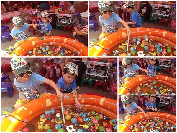 冰雪展外頭就是個小夜市,很多吃的喝的玩的...不過,好熱喔!!讓恩、倫玩個釣魚遊戲吃個果凍冰棒補充體力,我們就回家補眠啦!