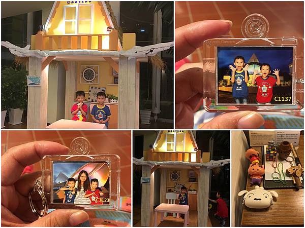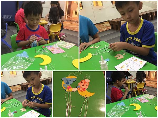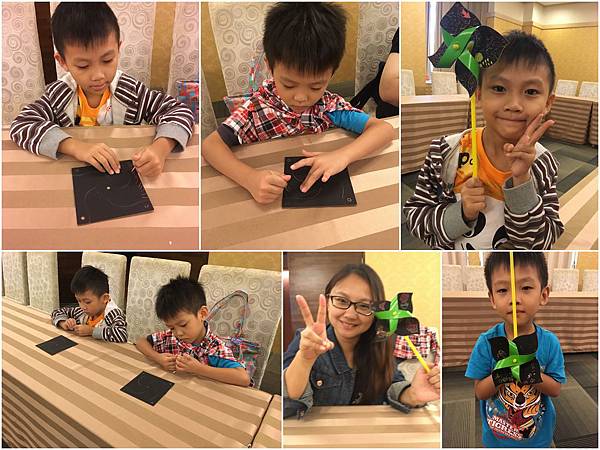 被房間給刺激到,又去不了海邊,所以下定決心要非常認真的"住"飯店,第一次把飯店提供的所有服務簡介、手冊全部看完,把所有的遊戲室位置、親子活動的時間全部彙整完畢,立馬就打電話一一預約三個DIY,貓頭鷹鑰匙圈(免費)、不織布風鈴(100元)、刮畫風車(免費)