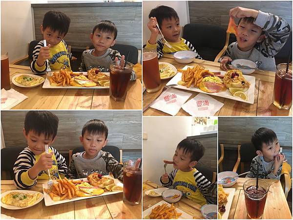 回到板橋的時間太早,家裡沒大人,所以又拎著恩、倫去吃豐滿早午餐,點了巨無霸的皇后套餐,撐到肚子圓滾滾的才滾回家,哈哈哈!