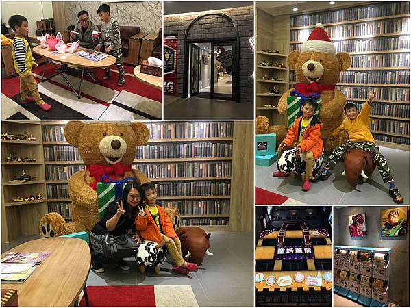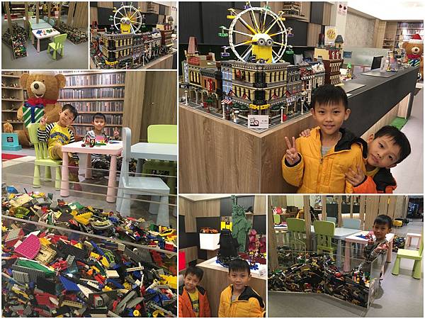童話藝宿湯旅的外觀像一座小城堡,一樓大廳有好多的樂高造景,還有給孩子玩的樂高池,恩、倫欣賞玩樂高作品後,一頭栽進樂高遊樂區裡面,挖寶是他們的最愛呀~ 所以我們一家就佔據了休憩區的一張大桌子,吃起來玩起來了。