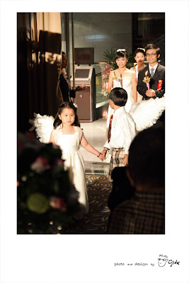 首先是一對小花童,背上還背著一對白色的羽毛翅膀,超可愛的啦!!