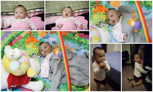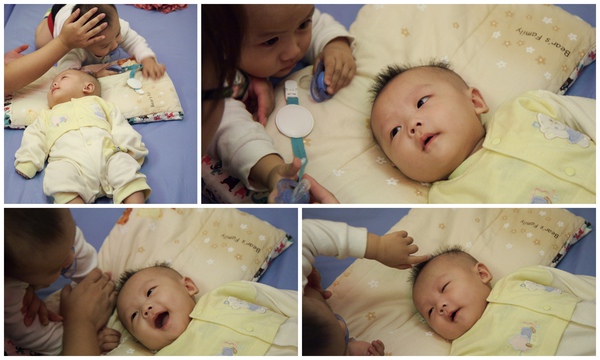 而阿倫倫現在眼睛也會一直盯著小恩看,看小恩在作什麼玩什麼,然後手舞足蹈得想要參與的樣子呢~~看來很快,阿倫倫就要加入小恩的行列,兩兄弟連手翻天覆地啦!!