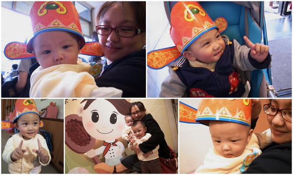 好一個溫暖的艷陽天,抱阿倫倫抱久了還會微微冒汗咧~~趁著Dear停車之際,我們先到郭元益糕餅博物館辦報到手續,順便領了頂狀元帽,兩個小傢伙輪流戴,玩的不亦樂乎~(小恩之前抓周也拿了一頂,不過已經被撕破丟在遊戲區的陰暗角落乏人問津囉!!)