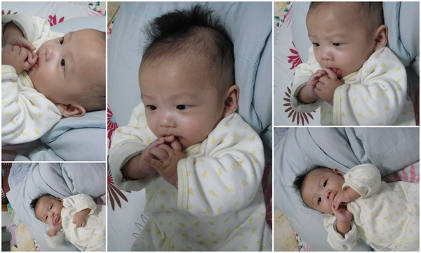 然後還買了嬰兒米餅給阿倫倫吃,但阿倫倫最愛吃的還是自己的手指頭,一隻一隻的吃得嚇嚇叫喔!!有時候明明含著奶嘴,還要硬塞一隻手指進嘴巴湊一下熱鬧,吼...小小的嘴巴怎麼那麼忙碌呀!!更誇張的是米蟲會在半夜被阿倫倫吃手指的嘖嘖聲給吵醒,這孩子會不會太誇張了呀!!後來發現不只米蟲,連睡覺中間隔了米蟲、小恩,兩個人之遠的Dear也聽見了阿倫倫吃手指的聲音,超好笑的啦!很明顯的,阿倫倫也是個小小貪吃鬼,哈~這又是有遺傳到啦!