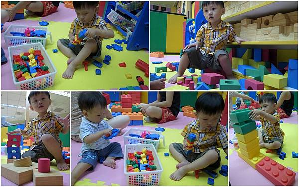 而阿倫倫則是小小跟屁蟲,小恩玩哪一種,他就會跟著玩,東摸摸西摸摸,還會試探性的把積木放到嘴裡嚐味道,害米蟲回回都要搶在阿倫倫把東西塞進嘴裡之前,先把東西搶過來,畢竟不是自己家的,可不能亂吃,不過阿倫倫最愛作的事情還是把小恩組裝好的積木給搞垮拆掉,哈哈哈!!