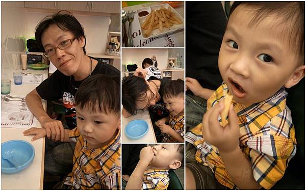 約莫又隔了一兩個星期,我們再去光顧一次,這次改點青醬雞肉義大利麵、Dear點了個特製的新品,XO醬之類的辣口味,我覺得還不錯,不過不合Dear的胃口,這次小恩還是狂嗑薯條完全不吃麵了,連阿倫倫也跟著小恩抓著薯條猛往嘴巴裡塞,噗...有這麼好吃嗎??
