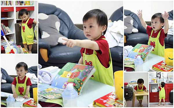 家裡的玩具越來越多(買奶粉會送、買尿布也會送、還有親友鄰居三不五時會送二手玩具),米蟲真的沒有再買呀!!(我只買書,哈哈!!)搞得咱家的玩具區堆得滿滿滿,小恩一回家就會迫不及待的把所有的玩具通通都灑出來,往往累死我們在後面跟著收的這對爸媽,當然有訓練小恩收拾,但這小子完全是看心情的,有時十分配合,叫他做啥就作啥,幫完你還會自動自發的拍拍手(暗示你也要幫他拍拍手鼓勵一下,呵!)但有時要小恩撿一顆球,拿著球走到一半,小恩就把球放在椅子上,換從椅子上拿走一本書,拿了書走呀走,又走到桌子旁,放下書,改拿一台小汽車,摸了三四個玩具,卻沒有一個拿到收納箱裡頭,真是不懂這是哪門子的收拾,不過就是把東西從東拿到西罷了,一點都沒有幫上忙呀!!昏...
