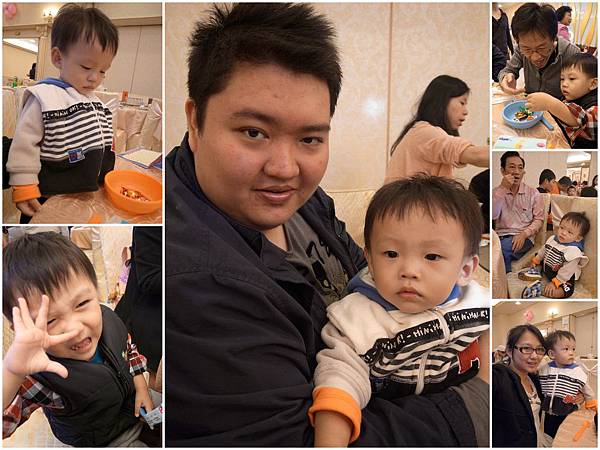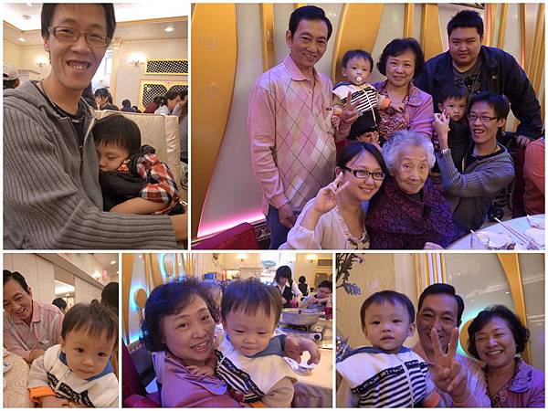 壽宴,開了九桌,剛剛好,坐得滿滿滿的。媽咪去坐主桌陪外婆,我們一家子跟剛新婚的伯淵、潔西卡一桌。