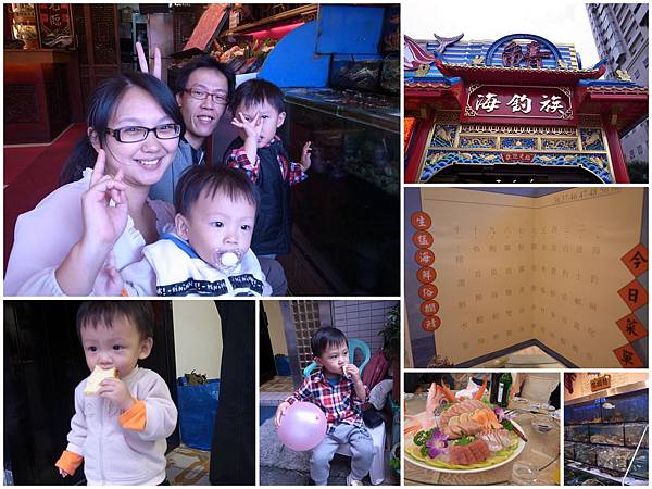 然後上來一大盤的蒸海蝦,小恩跟阿倫倫一隻接一隻的吃,我還差點來不及剝蝦殼咧~真的很甜肉質很有彈性說~好吃呀!!吃到這兒,兩個小傢伙就差不多擺平了,小恩吃飽賴在Dear懷裡睡了,阿倫倫則是不耐煩的想要四處走動走動,由於今天的菜色全部都是海鮮,讓嗜吃海味的老爸光看到菜單就雀躍不已,所以我就帶著阿倫倫四處串門子,讓老爸可以好好的大快朵頤一番。