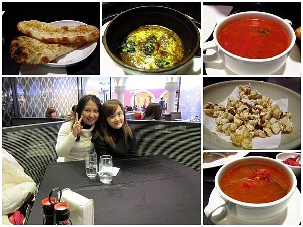 麵包入口已經不是溫熱的,掰了兩小塊,沒味道,本想沾湯吃,但我的番茄牛肉湯,好酸好酸好酸,酸到小君直接按鈴叫服務生了,猛。服務生拿走湯品,五分鐘後,經理來了,說這湯本來就這樣,沒問題,又把原本的那碗放回我們桌上,但,我們完全沒再碰了。消極的抗議。
