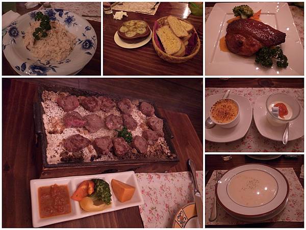 橙汁鴨胸超大塊的,一上來時我還以為是半支雞咧~沒想到這麼大一塊鴨胸,還能夠料理的很嫩,很鮮甜,橙汁又很提味,沾不沾醬都有不同的風味,頭家吃了一塊連聲推薦昭延也要嚐一下,好吃的咧。Dear點的鹽烤牛排,也超讚,我吃第一塊應該是不到五分熟,等到最後又吃了一塊,大約八九分熟,都很好吃,不到五分熟的肉質很甜,沒有腥味,而八九分熟的也不會太老太柴,好吃吶。