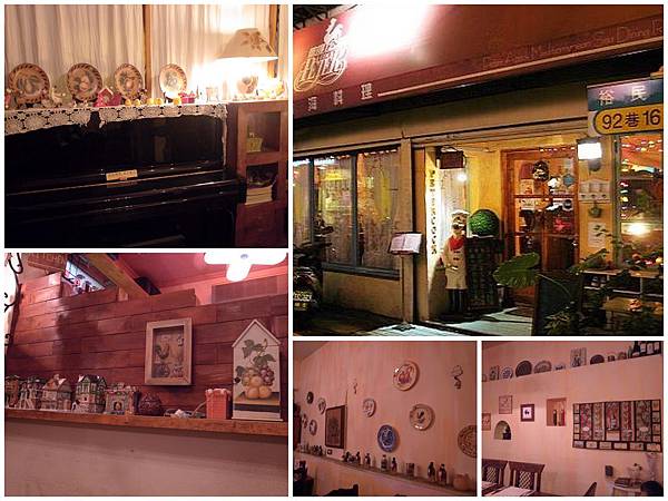 也因為幾乎是我們包場狀態,所以用完餐可以放心的讓兩個小傢伙在餐廳裡走走看看,不用擔心遭人白眼,小恩跟阿倫倫到處找公雞,小恩喊著"咕咕ㄍㄟ"數著一個兩個三個,阿倫倫則是"雞雞雞"不停的叫,好HIGH呀!!餐廳整個走溫馨的鄉村路線,帶著有點斑駁的擺飾、有點年代的老鋼琴、牆上的壁畫、感覺好像在家裡用餐一樣熟悉、舒適,好愜意唷。