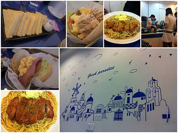 p.s.店內裝飾雖然走海洋希臘風格,但有不少小貓咪的飾品,莫名的雅米在兩個小傢伙心中的代名詞就成了貓咪早餐啦~~