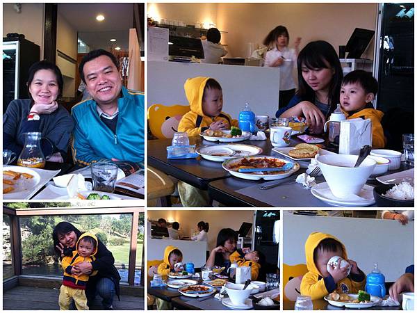 小子們感興趣的還有那一群鴨子(鵝?火雞?)在池邊也待了一會兒,然後就攻向兒童遊戲區了,爬繩梯、獨木橋、溜滑梯,就讓兩個小傢伙玩翻了~連要抱他們回去用餐都要再三保證等一下吃完飯會再來玩。