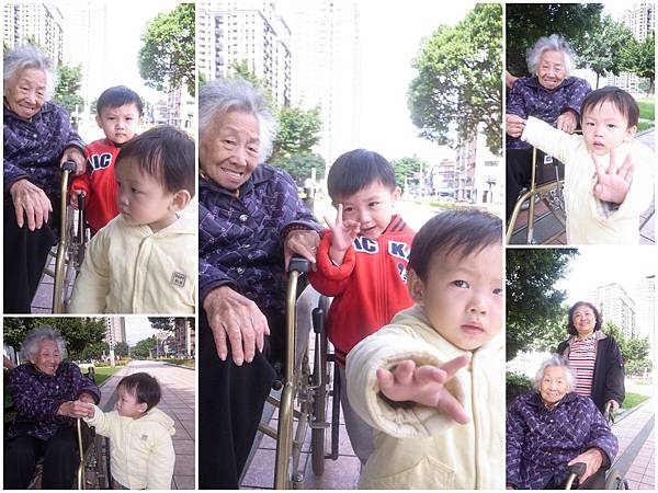 外婆看到兩小開心極了,直拉著兩小拍照,不過這兩隻閒不住,勉強拍個照就往遊戲區去了~