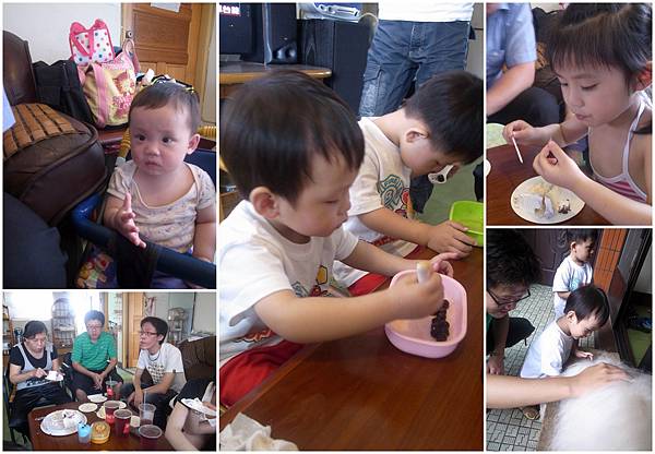 難得跟小姑一家碰頭,過年就該發的紅包,拖了大半年終於送出去啦~(我們這對小舅舅小舅媽實在很混呀~哈!!) 四隻娃兒聚在一塊熱鬧爆了,小朋友們喝紅茶吃粉圓開心極了,安分沒多久,吃飽喝足就玩到屋頂都要掀了~