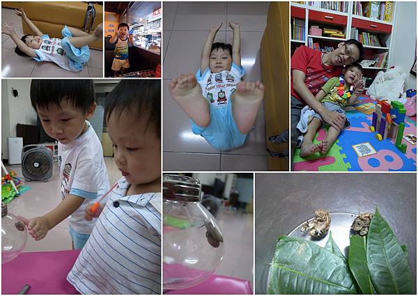 暨白額高腳蛛之後很厲害的公公從公園裡找到兩隻還沒長翅膀的蟬,帶回家給小傢伙們上第二課,原來蟬出生是住在土裡呀!!真的是聽公公講才長知識呀~是說,我小時後到底在幹嘛??啥鬼都不知道~哈哈!!兩個小傢伙每玩一會兒就會跑回桶子邊看蟬在幹嘛,等到無趣了又跑去玩,就這樣來來回回的,就連後來婆婆把蟬放生回樹上,兩個小傢伙還念念不忘,直嚷著叫公公再去抓兩隻來,ㄟ...小子,這種事是可遇而不可求的捏!!