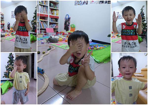 long long time ago,從Sugar那兒學到了一句皮咖噗,本以為是很蠢的話,沒想到自己當了媽,也跟兩個小傢伙玩起皮咖噗(hide and see)的遊戲,阿倫倫只要一聽到這句話,馬上就笑到翻掉(孩子的笑點還是很難了解呀~),所以我跟小恩超愛跟阿倫倫玩這遊戲。小恩的動作超標準,阿倫倫就老是遮半邊不然就是五隻手指張開開,看的一清二楚的捏~哈哈