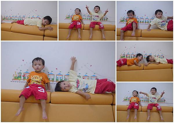 小恩跟阿倫倫都大了,原本的睡覺隊形(我睡在兩小中間當護欄)已經不能再用了,睡在他們中間可憐爆了,一下左鉤拳一下金剛飛腿的,再睡下去打113的應該是我了,所以來個大搬風,Dear睡靠牆的單人床,讓兩小睡一張雙人大床,阿母我則是睡在雙人床的床尾,以防小傢伙們滾下床(又是當護欄的命),Dear原本以為我這樣睡很可憐,但有一次他自己睡過之後,發現其實挺好的,第一不用擔心睡到一半被兩小鬼家暴,第二其實位置很寬敞,哈!!