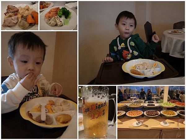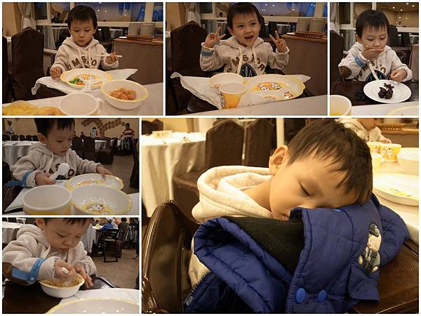 好笑的是,阿倫倫居然吃到睡著,當時阿倫倫已經吃完一盤食物,米蟲起身去晃晃,一回位就看到,Dear蹲在阿倫倫身邊,手給阿倫倫枕著睡,哈!!幸好Dear動作快及時接住阿倫倫的小腦袋,不然阿倫倫打盹一趴下去撞到桌面肯定放聲大哭的,幫阿倫倫喬好位子蓋上外套,我們就繼續用餐囉!!(每個路過的人都帶著笑意看著睡得超香甜的阿倫倫)