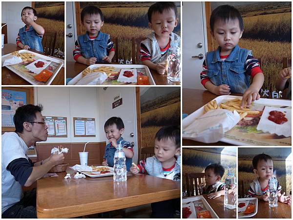 首先在二樓的MOS來頓早午餐,Dear大爺抱怨再一次被"參考圖"給騙了,匠味厚燒和牛堡超小的啦,紅茶跟薯條又被小恩跟阿倫倫占為己有,可憐的Dear根本吃不飽呀!!所以後來到三樓景觀台看飛機時,又買了伯朗的飲料,但被很愛斤斤計較(小錢)的米蟲抱怨,不好喝又貴,要是我寧可多走一層樓回MOS外帶大杯紅茶,(大爺願意充當跑腿的,就要偷笑了,還嫌咧~我真是太不知好歹了~哈!!)