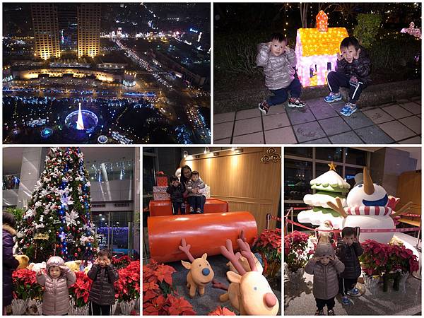 最後進了縣府大樓,又是一棵被一群熊娃娃包圍的歡樂聖誕樹,還有雪人和雪橇呢~拍完照,米蟲終於想到還有一個好景點,就是市府大樓的32樓觀景平台呀!!趕緊帶小子們上樓去,很久之前上來過感覺風景不怎麼樣,但可能現在是聖誕節的關係,每一條路上都被妝點的閃亮亮,看出去的景色就是沒理由得美呀~