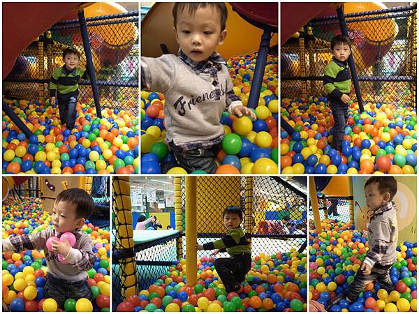 瞧,早上的球池算算也不超過六個小娃在玩,寬敞的很,不用擔心被推到擠到,阿倫倫甚至可以在球池游泳咧~不過對於管狀溜滑梯,小恩還是怕怕的,一個人不敢玩(大人無法陪著溜,只能在管道頭尾關切而已),阿倫倫就更別說了,這孩子到現在還是不玩溜滑梯,每回去公園都玩盪鞦韆跟搖搖馬,真是個怪怪滴小子。