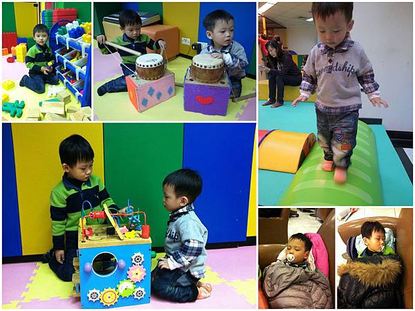 此回攻略戰術大公開,這回我們一早就出發(十點就可以入場),然後讓Dear在一樓大廳喝咖啡休息(實際上是先占位子)由我跟小傢伙們在遊戲館內瘋兩小時,早上人比較少,玩些器材少的玩具,像是積木、扮家家、車車、球類(不然人多就慘了,你以為有多少小孩會乖乖排隊輪流玩的嗎?? 在那個環境真的是先搶先贏,或是小霸王個性者勝利呀!!)