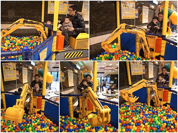 在Y17親子館外還有一個暗藏的陷阱,就是挖土機呀~(這可是要額外投幣的捏~)每個小孩看到眼睛都發亮了,人人吵得要開,超搶手說~但一次三十元好像三分鐘,好短喔!照片都沒拍幾張就結束了,小恩跟阿倫倫根本只負責出聲,從頭到尾都是老北自己開很爽,哈哈!!