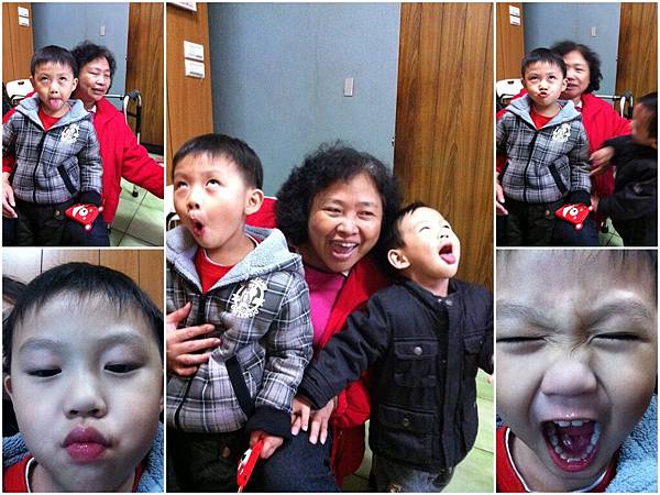 難得帶兩小子去看米蟲奶奶,兩小鬼怎麼都不肯跟阿祖合照,阿母我只好使出殺手鐧--快點來扮鬼臉!!